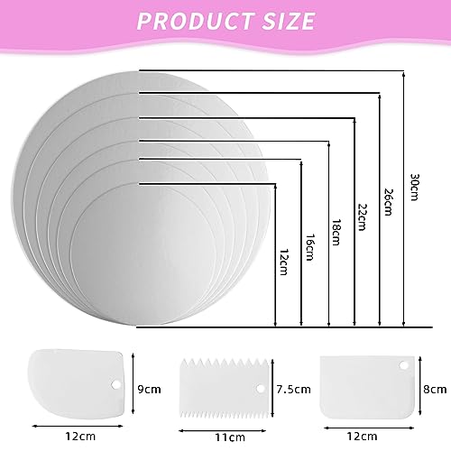 【Misure multiple】La Vassoio Cake Board è disponibile in sei misure: 12cm, 16cm, 18cm, 22cm, 26cm e 30cm e viene fornita con 3 raschietti per torte. Potrete liberare completamente la vostra creatività e realizzare la torta perfetta per ogni occasione!