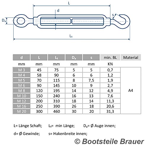 Esecuzione: tenditore occhio - Gancio (aenhl. DIN 1480)