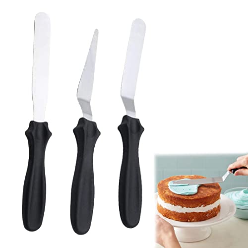 3 Pezzi Spatola per Torta, Spatola per Glassa, Spatola Professionale in Acciaio Inossidabile con Manico in Plastica per Vassoio Spatola per Pasticceria (Nero)
