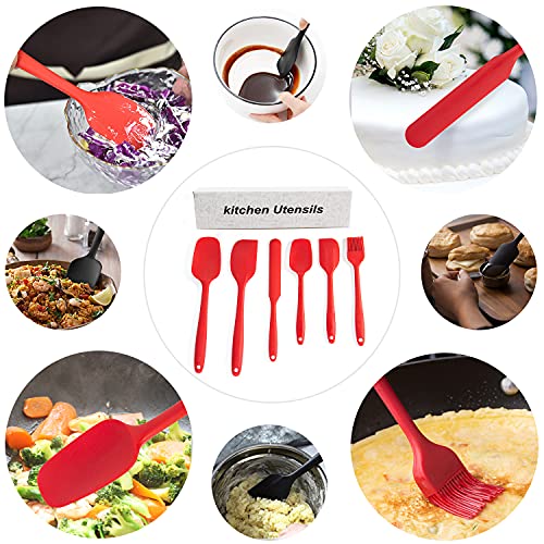 6 Pezzi Spatole in Silicone, Marisa da Cucina, Pennello Silicone Cucina con Rivestimento Solido Igienico, Cuocere e Miscelare in Silicone Utensili