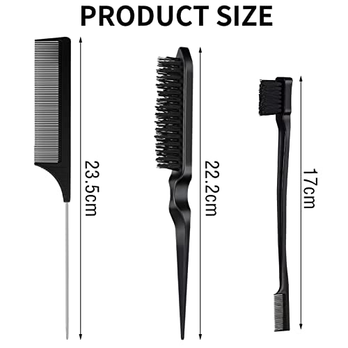 3 Pezzi Kit Spazzola Bordi,Pettini Spazzola,Spazzola per Capelli con Setole Pettine,Pettine a Coda di Topo Robusto,Spazzola e Pettine a Doppio Bordo,per salone parrucchieri(Nero)