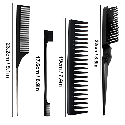 Set da 4 pezzi, spazzola per capelli e pettine, pettine per acconciature, pettine a coda di topo per impieghi gravosi per donne in viaggio, neonati, bambini (nero)
