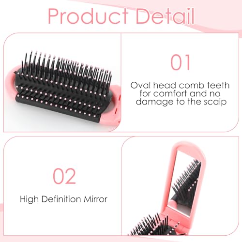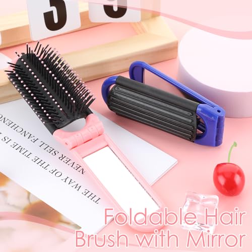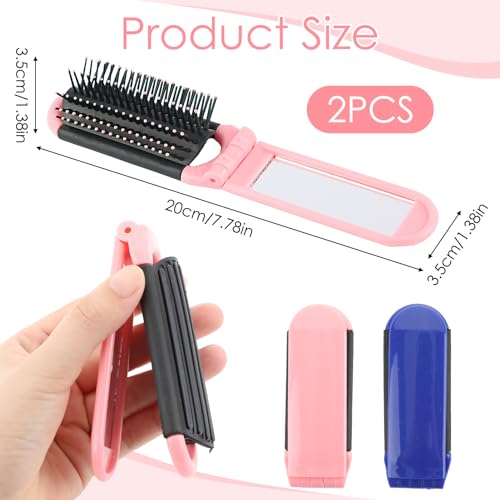 2 Pezzi Spazzola per Capelli da Viaggio con Specchio, Spazzola Pettine Pieghevoli Portatile per Massaggi Strumenti Spazzole Compatti per lo Styling dei Capelli per Viaggi per Donna Uomo