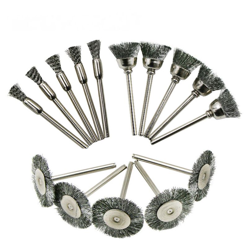 Funzione: questo set di spazzole per lucidatura è adatto per pulire, rimuovere la ruggine, levigare, spolverare, sbavare, lucidare e spellare superfici metalliche o non metalliche. Contenuto: composto da 15 spazzole per ruote metalliche in 3 diversi diametri, realizzati in acciaio inossidabile, per soddisfare le tue diverse esigenze. Funzione: con il design del manico, questa spazzola per ruote metalliche è facile da usare e facile da usare per rimuovere ruggine, incrostazioni e vernice da difficile a raggiungere i luoghi. Resistente: questo set di spazzole per ruote ha una lunga durata, effetto lucidante notevole, assenza di ruggine, alta efficienza e basso costo. Applicazione: adatto a molti scopi, rimuove vernice antiruggine e schizzi di saldatura da tutti i tipi di parti o superfici metalliche.