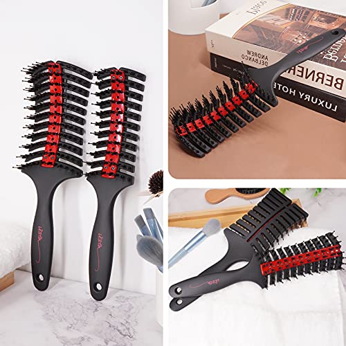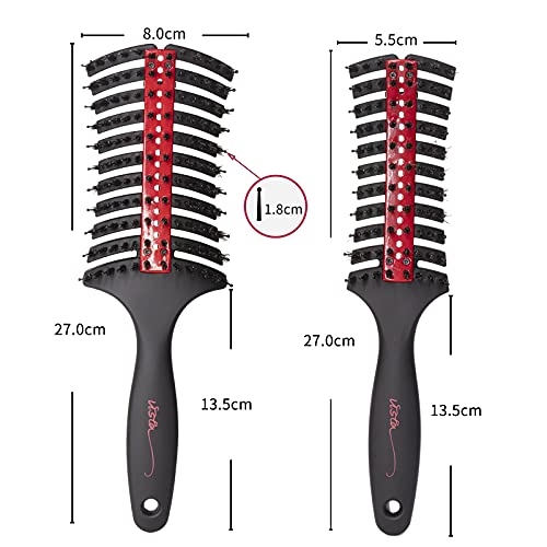 2 Pezzi Spazzola Pettine Capelli Spazzola per Capelli Curva con setole di Cinghiale Riduce l'elettricità statica Accelera l'asciugatura Diffonde olio per capelli Adatto a uomini e donne