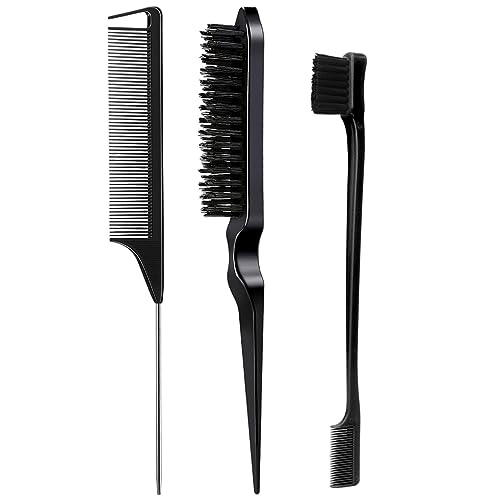 3 Pezzi Spazzola Pettini per Styling Capelli, Acconciatura Spazzola e Pettine a Coda Robusto, Doppio Bordo Pettine, Pettine per Stuzzicare Professionali per Parrucchiere, Donne, Uomini, Bambini(Nero)