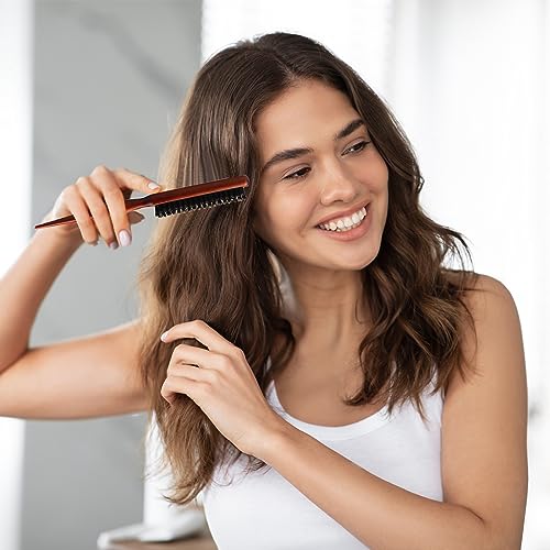 2 Pezzi Spazzola con Setole di Cinghiale, Spazzole per Styling Capelli, Spazzola da Barba Spazzola per Capelli con Manico in Legno Professionale Pettini per Donna Uomo e Bambino