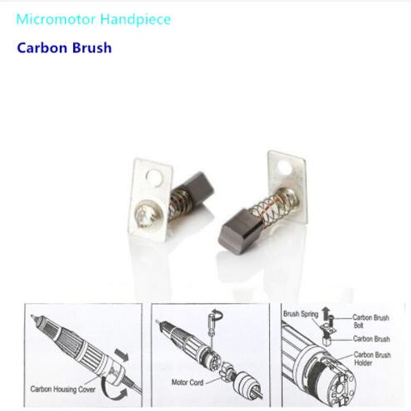 Spazzole di carbone per il FORTE 210 e serie di vari modelli di Manipolo Micromotore Sostituzione delle spazzole di carbonio 1)Atter turing off il potere di un carbonio dell'alloggiamento della copertura del motore cavo dal Motore 2) togliere spazzola di carbone bulloni da un cacciavite (+) e quindi rimuovere worn-out di carbonio Spazzole 3) sostituire la nuova spazzole di carbone con attenzione, un pennello primavera dovrebbe ottenere inceppata in un carbonio Supporto di spazzola 4) montare il manipolo 5) dopo l'esecuzione il manipolo sotto nessun stato di carico di circa 2,0000 rpm per 30 minuti, E quindi utilizzare * Ciclo di sostituzione di spazzole di carbone dipenderà dalla ore di lavoro e di carico Condizioni di