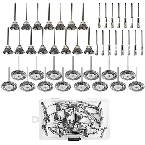 [Varie dimensioni] -Diametro manico: 3 mm (1/8 di pollice), spazzola a ruota: 23 mm / 0,9 pollici, spazzola a tazza: 15 mm / 0,6 pollici, spazzola: 5 mm / 0,2 pollici.