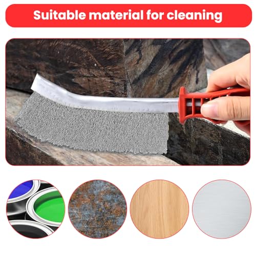 Ampia Gamma di Applicazioni: Le setole lunghe e strette sono ideali per rimuovere le macchie in luoghi difficili da raggiungere, ad es. parti in acciaio, macchinari, parti metalliche di autoveicoli, macchie di vernice, macchie di ruggine, ecc. Le setole sono adatte per superfici più morbide e metalli e aiutano a pulire senza danneggiare il materiale