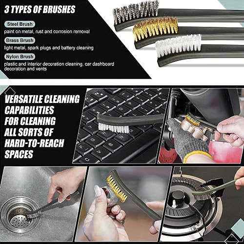 Spazzola in nylon - Facile da pulire le superfici rifinite, ideale per rimuovere sporco e detriti da pannelli interni delle porte, finiture, cruscotti. SPAZZOLE IN ACCIAIO INOX - Ideali per la pulizia e la rimozione di vernici allentate, pelle ossidata e ruggine dalle parti metalliche, nonché per lo strofinamento pesante.