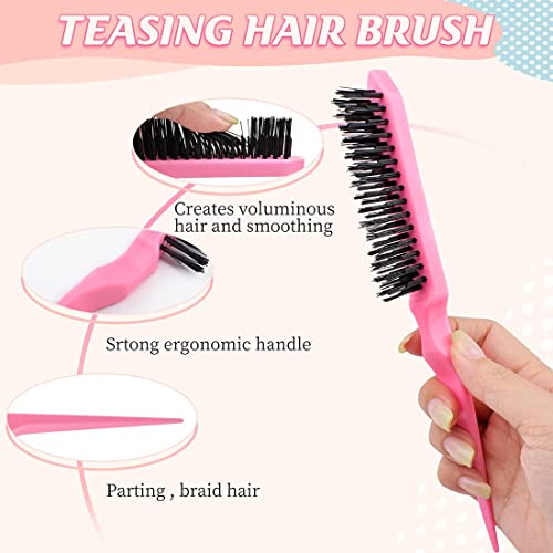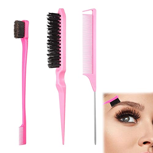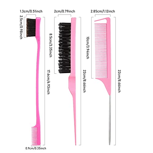 3 pezzi Spazzole per Stuzzicare, Spazzola e Pettine a Doppio,Bordo Pettine con Spazzola per Capelli in Setola, Pettine per Stuzzicare Professionali, Per Parrucchiere, Donne, Uomini, Bambini (Rosa)