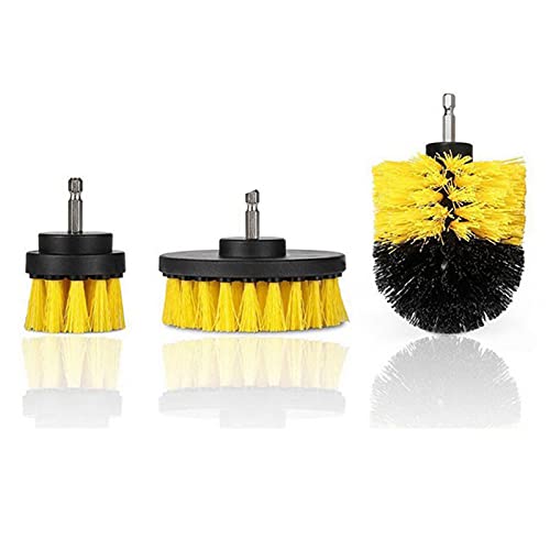 Kit di accessori per spazzole per trapano: il set di spazzole per trapano contiene 3 spazzole in nylon giallo di diverse dimensioni e durezza, rispettivamente 2, 3,5, 4 pollici di testine. Le spazzole sono adatte a quasi tutti i trapani elettrici a batteria.