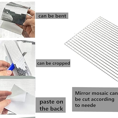 Ambito di applicazioni: utilizzare mini adesivi a specchio per decorare pareti, decorazioni d'interni, camere da letto, cucine, feste da ballo e decorare cornici per foto, piante in vaso, taglio di carta, biglietti da visita, album di ritagli, collage d'arte e molto altro ancora, per rendere la tua vita piena di arte