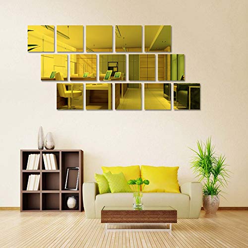 15 pezzi 15 cm Specchio Adesivi per Parete, Quadrato Dorato Specchio Piastrelle Autoadesivo, Removibile Acrilico Specchio per Casa Bagno Camera da Letto Ufficio
