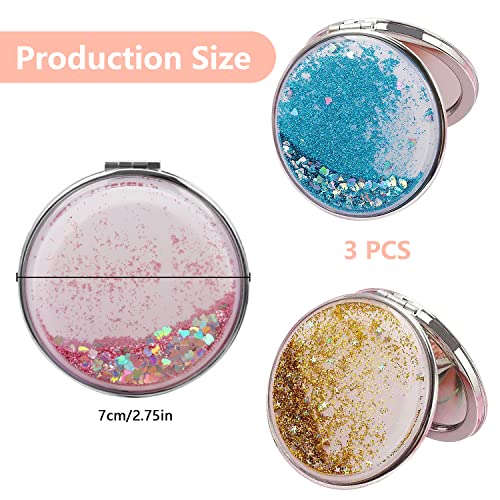 WACH AUF 3 Pezzi Specchio da Borsetta, Specchio Tascabile, Specchio Trucco Portatile, Specchio Cosmetico Compatto con Ingrandimento 1X/2x, Specchio Borsa, Pieghevole, Bifacciale, Giro (Rosa, Oro,Blu)