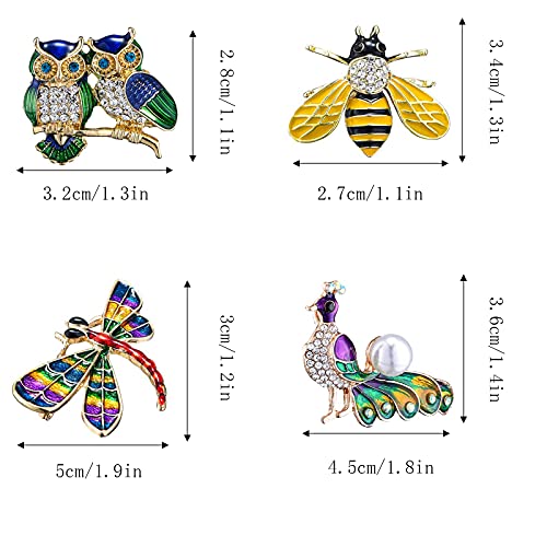4 Pezzi Spilla Pavone Cristallo Moda, Spille in Cristallo con Strass Multicolori, Set di Spille Animali da Donna, Gufo, Ape, Libellula, Pavone Decorano i Regali di Nozze per la Festa Delle Ragazze