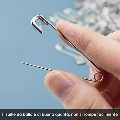 SPILLE DA BALIA: È un prodotto indispensabile e pratico in casa, punte affilate dell'ago possono facilmente penetrare nel tessuto senza causare danni o fori di grandi dimensioni e possono fissare saldamente il materiale. l'estremità del perno mantiene il perno bloccato, copre i punti taglienti e può proteggere il tuo dita.