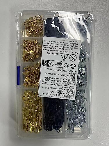 【Cosa riceverai】 Riceverai un totale di 540 spille per pannolini, nei colori oro, argento e nero, le dimensioni di 19 mm, 22 mm, 28 mm, 38 mm, ogni spilla per pannolini di colore è disponibile in 50 pezzi 0,75 pollici ( 19 mm), 50 pezzi 22 mm (0,87 pollici), 40 pezzi 28 mm (1,1 pollici), 40 pezzi 38 mm (1,5 pollici).
