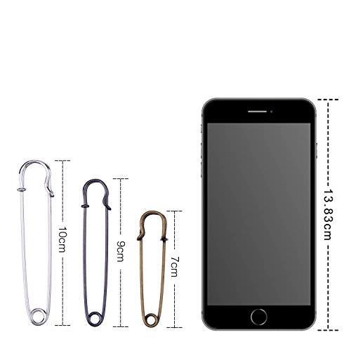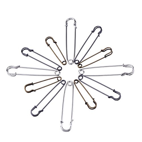 12 Pezzi Spille Di Sicurezza Larga Extra In Acciaio Inox Spilla Da Balia Clip Pesante 3 Taglie (Argento Bronzo E Nero)
