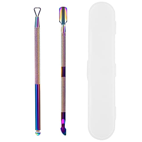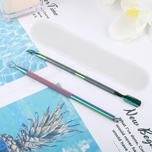 2 Pezzi Spingi Cuticole, Spingi Cuticole Professionale a Doppia Testa Cuticle Pushers in Acciaio Inox, Set con Spingicuticole con Scatola per le Cuticole di Mani e Piedi