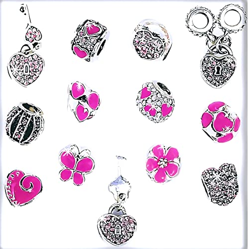 Rkc 20 x pezzi splendido rosa, con perline in argento Sterling 925 placcato smalto set per Fits ciondoli collane bracciali collane gioielli - compatibile con Pandora, Biagi, Troll, Chamilia UK Pink Silver