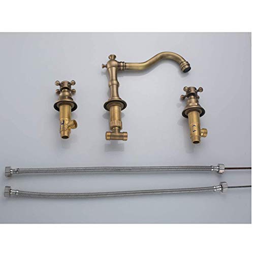 Rubinetto a tre pezzi diviso a parete da bagno, finitura in ottone antico, stile classico e in cerca di bagno da bagno da bagno