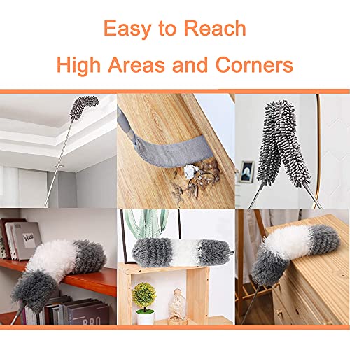 4 Pezzi Spolverino per Polvere, Spolverino per Polvere Allungabile, Microfibra Spolverino Telescopico Allungabile Lavabile Piumino per Spolverare Ragnatele Sotto Divano Letto Ventilatore a Soffitto