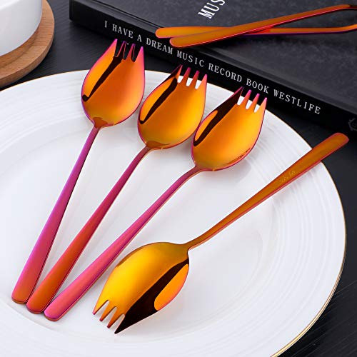 6 Pezzi 2 in 1 Spork Multifunzione (Cucchiaio e Forchetta), Bisda 18/10 Arcobaleno Rosso Inox Argento Cucchiaio e Forchetta Set per Tagliatelle, Pasta, Fruttae e Così Via, Lavabile in Lavastoviglie