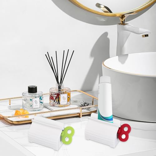Niente più sprechi: Lo spremi dentifricio è progettato con un fulcro, inserisci il dentifricio nel rullo, ruota la maniglia, può essere spremuto senza sforzo, adatto per adulti e bambini. Utilizzando uno spremiagrumi è possibile spremere fino all'ultimo grammo di dentifricio.