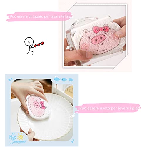【Aspetto carino】:La forma carina può aggiungere un po' di colore a una cucina o un bagno. non sono solo ideali per la pulizia di cucine o bagni, È anche divertente per i bambini osservare i spugne magiche si gonfia dopo essersi idratati e sviluppare interesse per i lavori domestici.
