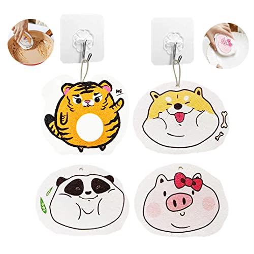 【Pacchetto incluso】: 4 simpatiche spugne, 2 pezzi gancio autoadesivo.