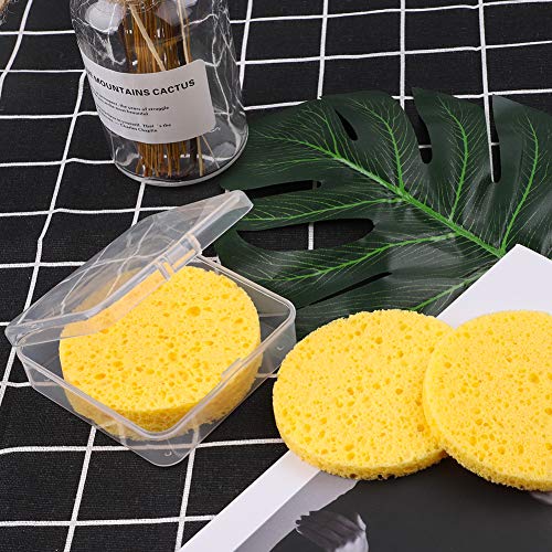 50 Pezzi Spugnette Viso,Spugnette Viso Pulizia Spugnette di Bellezza Naturale Spugne per la Pulizia del Viso Riutilizzabile per Detergere,Rimuovere il Trucco ed Esfoliare (Rotondo,Giallo)