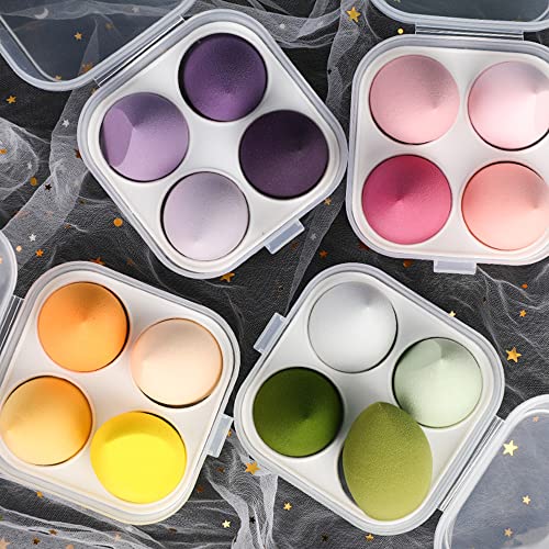 4 Pezzi Spugnette per il Trucco, Spugnette Make Up, Spugne Fondotinta Makeup, Spugna di Bellezza Professionale, Multicolore, Adatte per e Polveri, Fondotinta, Correttore, Fard, Blush (Serie viola)