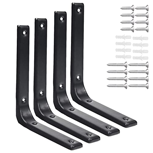 4 Pezzi Staffa muro Mensola,Reggimensola Industriale,Mensole Staffa Angolare,Supporto muro Mensole Pesanti,Risparmia Spazio muro Scaffali,Tavoli e Sedie,Letto,Giardino,con Viti,200x150mm(Nero)