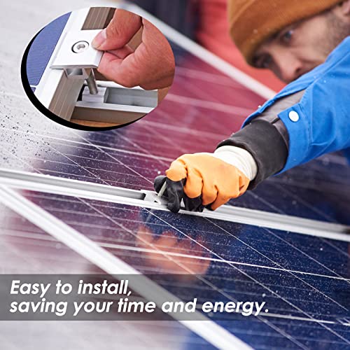 【Design professionale】 la staffa fotovoltaica utilizza un design a forma di T, in modo da stabilire una connessione solida tra i pannelli solari, senza doversi preoccupare dei problemi di scuotimento dei pannelli solari.