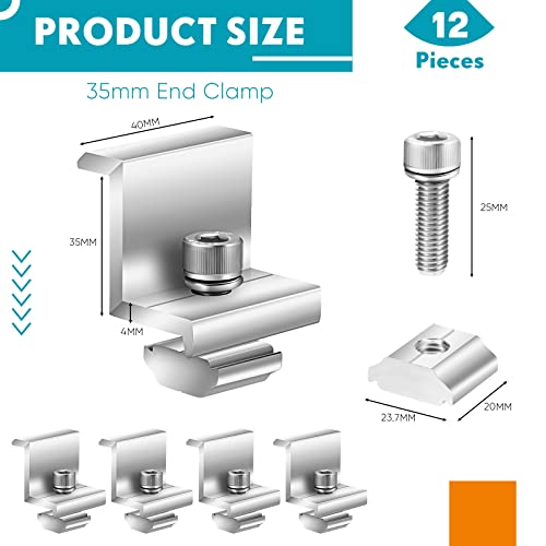 Facile da installare: il morsetto terminale in alluminio è adatto per il kit di montaggio per fotovoltaici con viti a testa cilindrica e piastre filettate M8 e M9, che si montano sulle guide del profilo con viti e dadi flangiati, è adatto per il montaggio semplice e veloce di pannelli solari Moduli fotovoltaici su diverse superfici piastrellate
