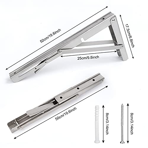 2 Pezzi Staffa Pieghevole,500mm Staffe per Mensole Pesanti, Staffe Pieghevoli per Tavolo da Muro,Mensola Pieghevole da Muro Carico Massimo 227kg