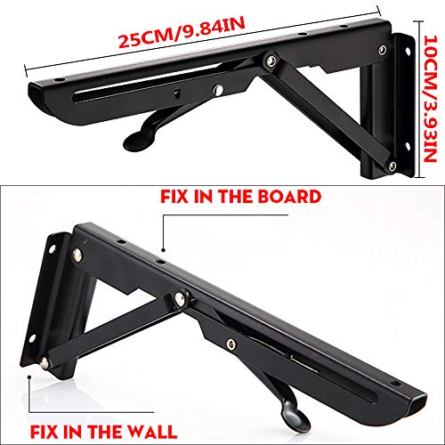 2 pezzi Staffa Pieghevole 250 mm, Kalolary Heavy Duty Acciaio Inox Cerniera Mensole Pieghevole Parete Salvaspazio Staffa Triangolare Fai Da Te per Mobili Scaffale Tavolo Banco Carico Massimo 55 Libbre