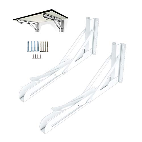 2 pezzi staffa pieghevole mensola, staffe per mensole resistente per tavolo da banco, staffe pieghevoli triangolare fai-da-te salvaspazio montata a parete, carico massimo 100 kg,Bianca,350mm/14 in