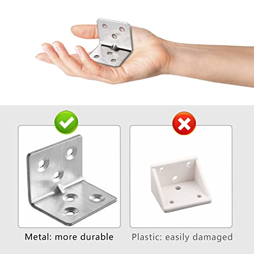 【Set di staffe angolari da 20 pezzi】 Include 20 staffe angolari e 120 viti, dimensioni staffa: 38 x 30 x 30 mm/1,5 x 1,2 x 1,2 pollici, diametro del foro: 5 mm/0,2 pollici, ogni staffe angolari viene fornita con 6 viti per fissare la staffa alla tavola .