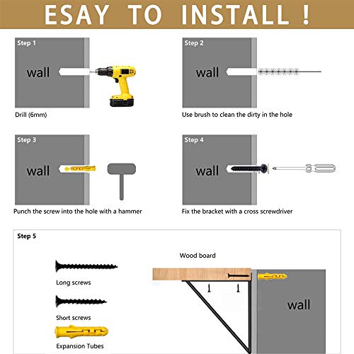 【Facile da Installare】 Le viti in acciaio di alta qualità e gli ancoraggi per cartongesso necessari per installare le nuove staffe per mensola, nonché le viti corte per il fissaggio delle assi di legno. Non è necessario acquistare viti aggiuntive.