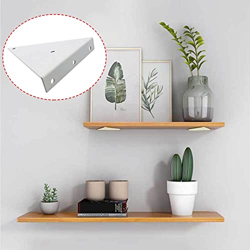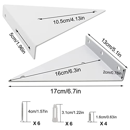 2 Pezzi Staffe Supporto Mensola Invisibile Galleggiante Staffe per Mensole Forma di Triangolare Staffe in Metallo per Mensole Pesanti per Librerie, Mensole Cucina, Mensole Espositive (Bianco)