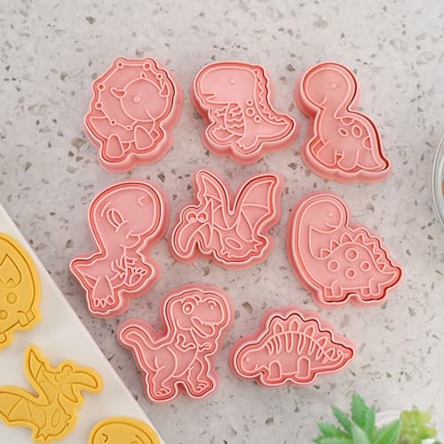 Set di 8 pezzi di stampi per biscotti di dinosauro, timbri di plastica per biscotti di dinosauro, timbri per stampi di biscotti 3D per feste di dinosauro, feste di compleanno per bambini, pasta per bi