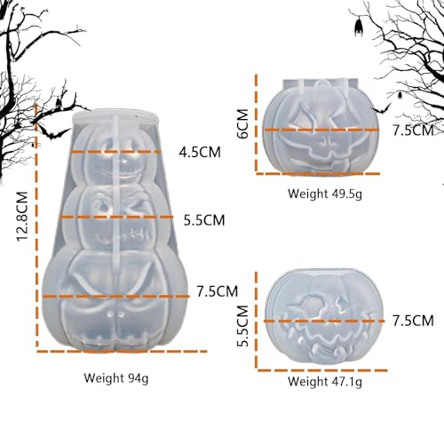 3 Pezzi Stampi Per Candele In Silicone,Halloween Stampo In Resina Per Candele Stampi In Silicone A Forma Di Zucca Stampi Per Sapone 3D Stampo In Resina Mini Stampi Per Resina Halloween