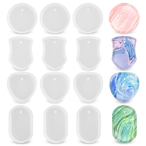 12 Pezzi Stampi per Resina Siliconica, Stampi di Resina Circolare, Stampi per Gioielli in Resina con Fori, Stampo Collana di Resina, Stampi per Portachiavi di Gioielli in Resina Epossidica