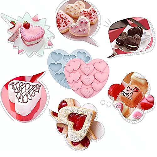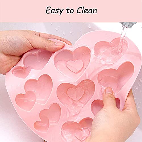 2 Pezzi Stampi in Silicone Cuore, Stampi In Silicone Per Cioccolatini, Stampi Silicone per Caramelle e Cioccolato, Con 3 Forme e 9 Fori, per Fare Cioccolato, Gelatina, Mousse, Sapone (Rosa, Blu)