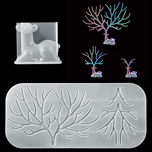 FHYT 2 Pezzi Stampi in Silicone Alce Epossidica per Gioielli Fusione di Corno di Cervo Fare Decorazione Artigianali Supporto Display in Cristallo Fai-da-Te
