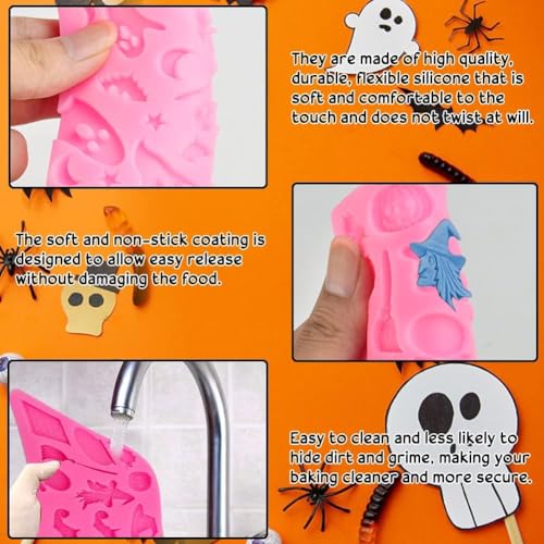 5 Pezzi 3D Stampi in Silicone per Halloween,Cranio Stampi in Silicone,Stampo Torta Silicone Halloween,per DIY Torte Fondente Zucchero Biscotti Ghiaccio Dolci Marzapane Sapone