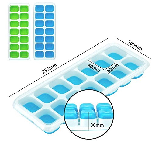 2 Pezzi - Stampo Cubetti Ghiaccio, Con coperchio di troppo pieno,28 Vassoi Cubo, LFGB certificato, Materiale Alimentare-Sicuro, Silicone flessibile Facile da Rimuovere Cubetti di Ghiaccio(Blu e Verde)